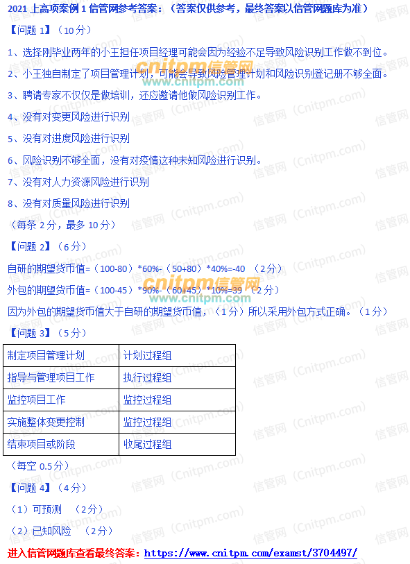 2021年上半年信息系统项目管理师案例分析真题试题一答案