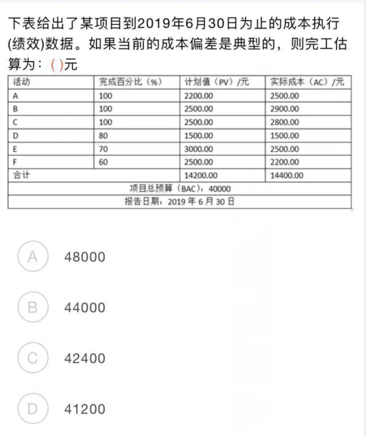 EAC=BAC/CPI 算出来大概是48192 用EAC = (BAC-EV)/CPI+AC 算出来是48175