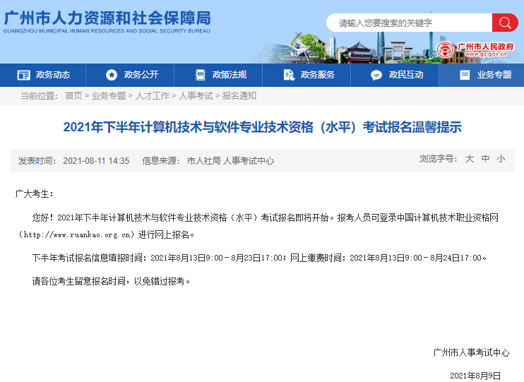 点击查看:广东2021年下半年计算机技术与软件专业技术资格(水平)考试报名通知