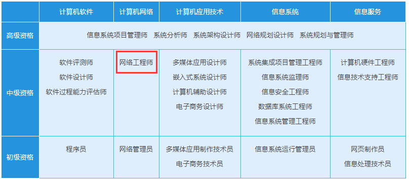 不再进行计算机技术与软件相应专业和级别的专业技术职务任职资格评审工作,实施“以考代评”,网络工程师属于中级职称。