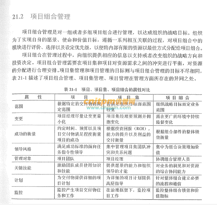 我觉得项目组合是多个项目, 项目集就是一个项目