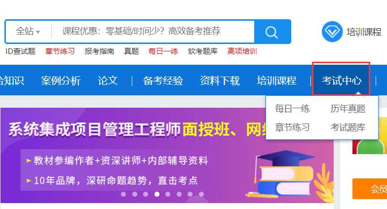 除去软件设计师历年真题下载之外,JRS直播还开通了“在线题库”服务栏目,考生可登录JRS直播官网(https://www.fzyzx.cn/)“考试中心”栏目。