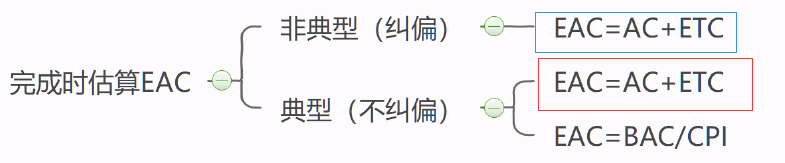 EAC永远等于AC加ETC,只是ETC分典型和非典型,也就是要不要除以CPI的问题,需要除的情况下,可以直接用BAC除以CPI来求EAC