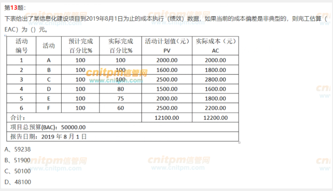 感觉题出的不严谨。为啥2020年下半年 实际进度100% 就不用了PV算,用的是预算乘以比分比