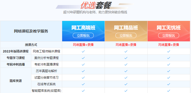 目前JRS直播网络工程师培训设置有高端班、精品班、无忧班多种学习套餐供考生选择,提供更为全面的网络工程师培训服务。