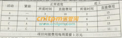 活动D赶工2周,费用增加3万