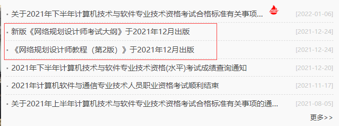 另外,如果软考某科目考试教材与考试大纲更新的话,中国计算机技术职业资格网(软考办)也会发布相应通知进行说明,以便考生能及时更换备考教材,不影响考生复习。