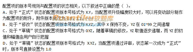 未指定试题:配置项的版本号规则与配置项的状态相关,以下叙述中正确的是( )。