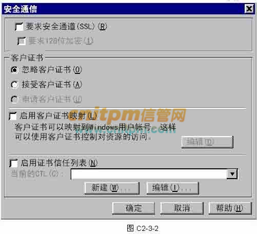 SSL(Secure Socket Layer)是目前解决传输层安全问题的一个主要协议,其设计的初衷是基于TCP协议之上提供可靠的端到端安全服务,SSL的实施对于上层的应用程序是透明的。应用SSL协议最广泛的是HTTPS,它为客户浏览器和Web服务器之间交换信息提供安全通信支持,如图C2-3-1所示。图C2-3-2给出了IIS5.0 Web服务器软件中启用HTTPS服务之后的默认配置。