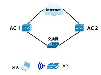 19、 在下图所示的双链路热备份无线接入网中,STA 通过 Pontal 认证上线,AP 当前连接的主 AC 为 AC1,STA通过 AP 在 AC1 上线,以下关于 AC2 的描述中,正确的是()。