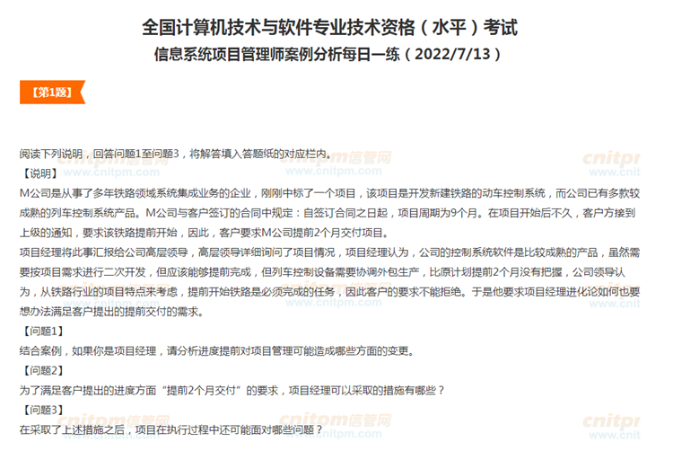 通过近年真题考查的内容来看,无论是信息系统项目管理师还是系统集成项目管理工程师,案例分析主要考挣值计算和网络图,所以网络图里的关键路径,网络图的绘制,总时差和自由时差的计算、挣值与预测技术、CV,SV,CPI,SPI的计算等一定要弄清楚。