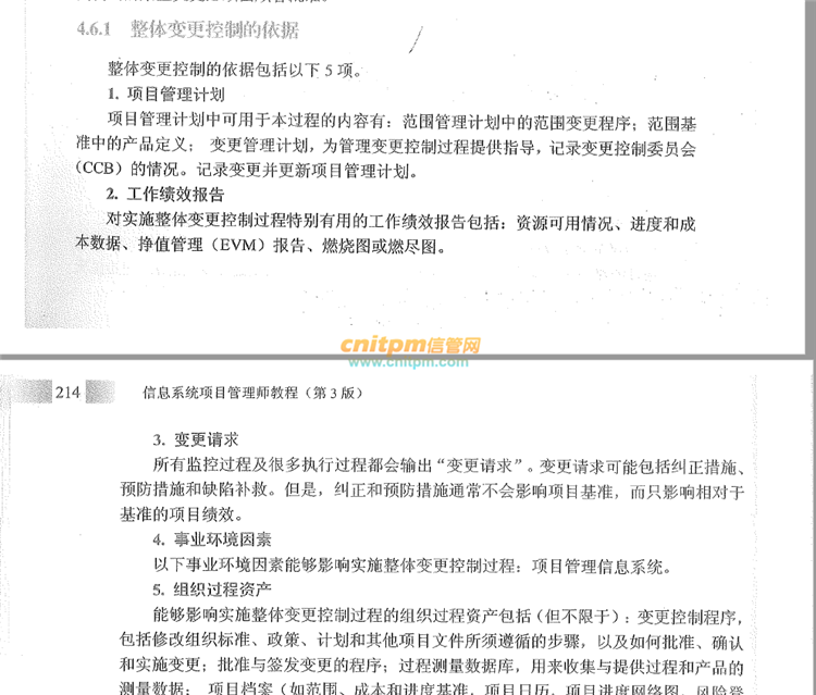 整体管理中的整体变更控制贯穿项目始终, 是从整个项目全局出发, 不是某一个领域