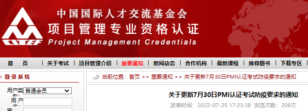 以上要求已更新至本网站发布的《PMI项目管理资格认证考试防疫相关事项考生告知书(2022年7月30日考试更新版)》(链接:http://exam.chinapmp.cn/examnotice-view-436.shtml)。