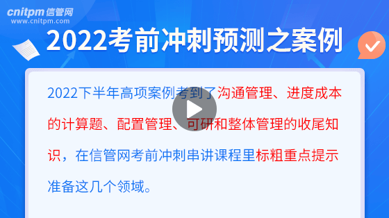 对于分析题,2022下半年高项案例考到了沟通管理、配置管理、可研、整理管理的收尾知识,在JRS直播考前冲刺串讲课程里标粗重点提示准备这几个领域,如果平常有认真学习然后再通过考前冲刺串讲的重点复习,相信这些内容都是可以答出来的。
