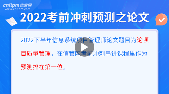 3、论文这次依旧是一个论题,这样基本可以确定以后都会只有一道题了。质量管理我们在考前冲刺资料和冲刺串讲课程里都放在了第一位,在论文专题课中老师也多次强调了质量保证的重要性,以及各种质量表单、质量工具的应用。