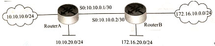 在下图的拓扑结构中,RouterA和RouterB均运行RIPvl协议,在RouterA上使用()命令即可完成路由信息的宣告。