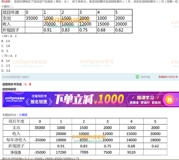 这种算信息系统项目管理师动态投资回收期的题你们怎么做的?