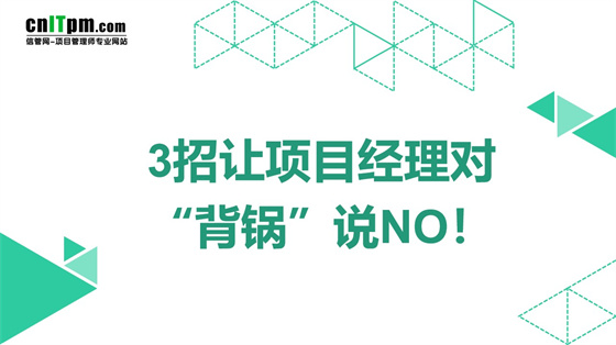 虽然在一般印象里,咱们项目经理都是“脚踩坑,身背锅”。但是并不代表背锅踩坑就是项目经理的工作日常,今天教你3招,大声对黑锅说NO!