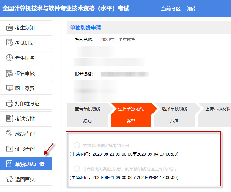 单独划线申请方法:进入中国计算机技术职业资格网(http://www.ruankao.org.cn),点击报名入口,登录报名系统,找到“单独划线申请”后在规定时间内提交材料进行申报。
