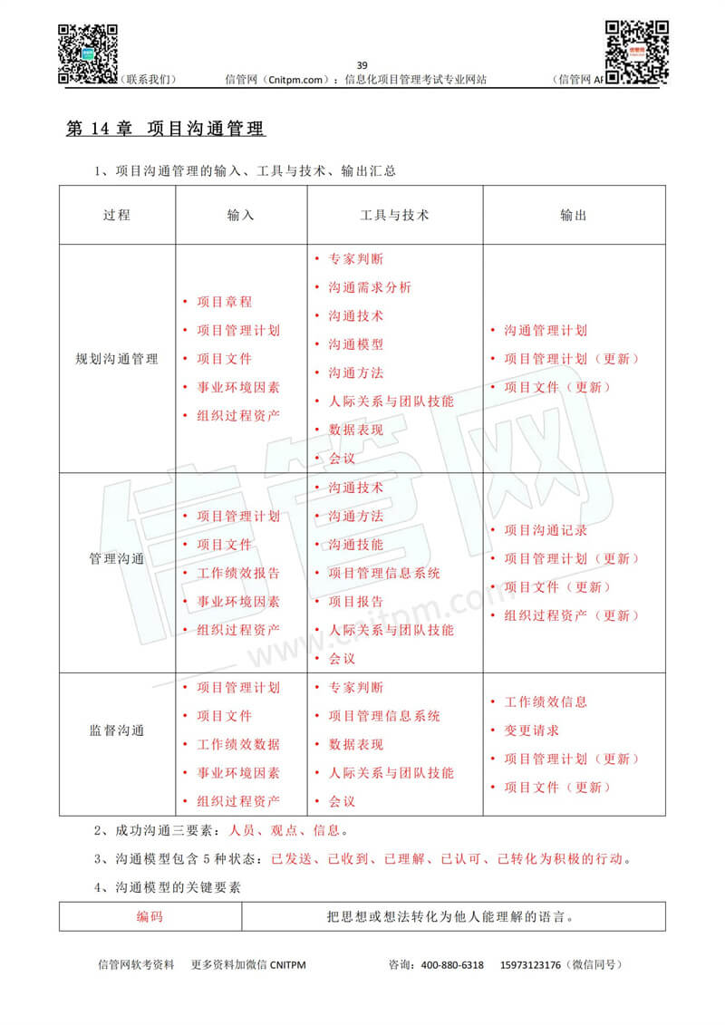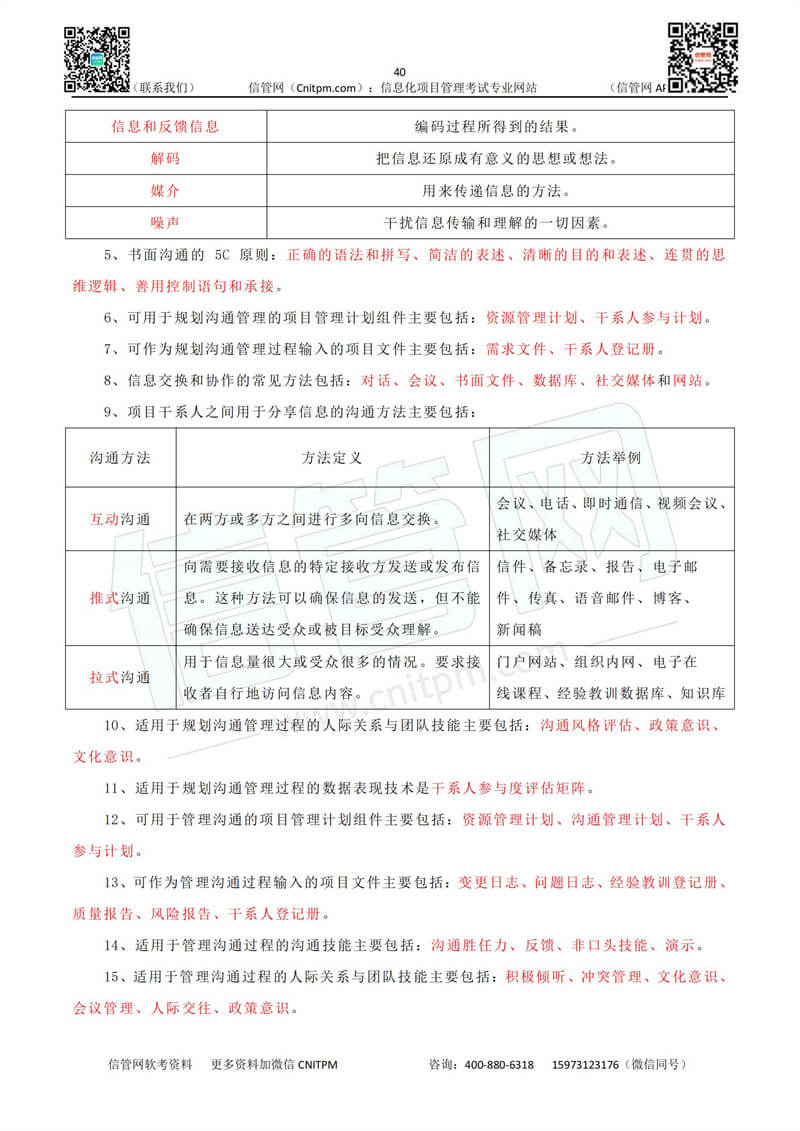 以下为JRS直播整理的信息系统项目管理师教程第四版考点默写本(普通版)《第14章-项目沟通管理》的参考答案,供广大考生查看: