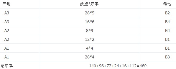 思路:首先分析表中单位运价数字的大小,可知: