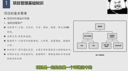 接下来我们来讲项目的内外部的环境啊,我们说项目是一定处在某一个环境当中的。之前我们也讲过,项目可能在组织层面展开,在任何组织的任何层面展开,比如说组织我们是有高层,有忠诚有基层是吧?你在任何一个层面都可以来展开项目。