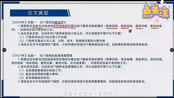那第三点呢就其实就是对第二点的一个补充。那比如说规划设计,其实咱们要写的就是?按照那个图来说,服务需求识别,服务方案设计,然后服务级别协议设计?咱们要写的就是这些内容啊。规划设计呢总共考了六次,考了六次,规划设计考了三次啊,规划设计考了三次,去年也考的是规划设计的一个过程要素设计啊。这个咱们后面再有时间的话,咱们后面再聊一下。