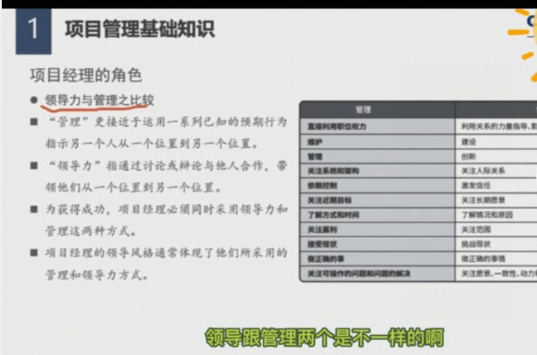 陈柏菁讲软考中高项(信息系统项目管理师、系统集成项目管理工程师):领导力与管理的比较