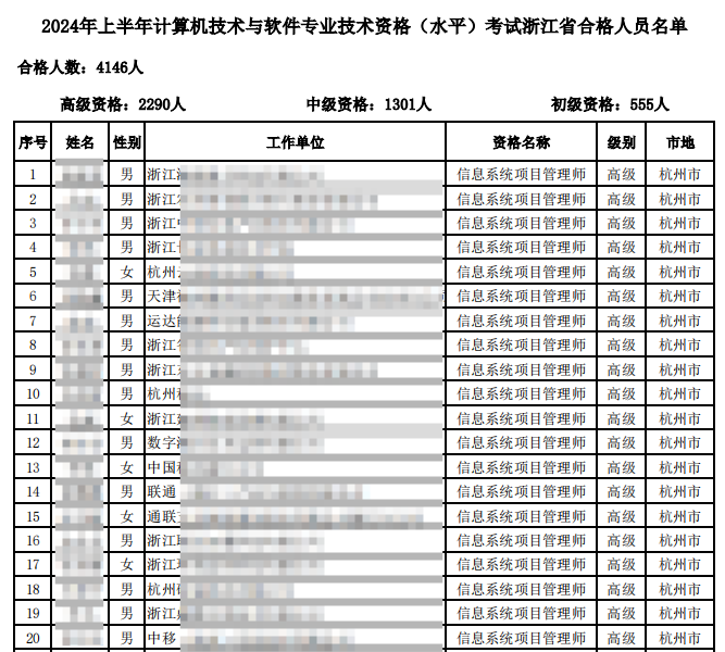 点击查看>>浙江省人力资源和社会保障厅关于公布2024年上半年软考合格人员名单的通知