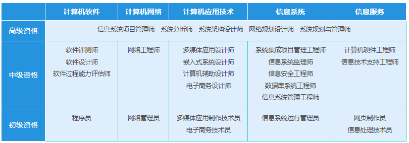 如果考生对于资格科目选择还是抱有疑问的话,可以按照专业领域,可以分为项目管理、网络、安全、开发、运维等方向。建议大家结合自己的工作内容、职业发展方向选择与自己专业或工作相关的科目。