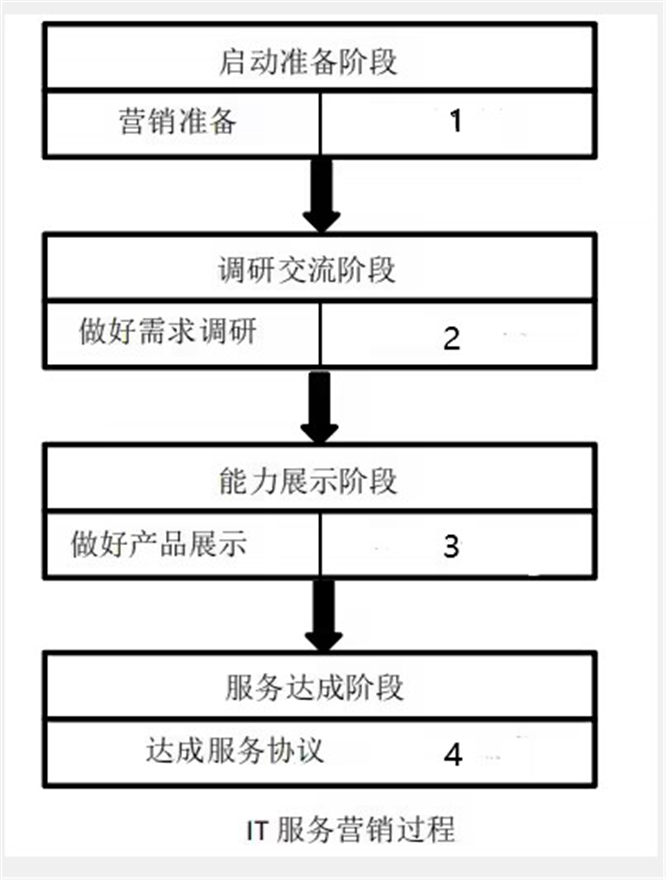 IT 服务营销过程分为四个阶段,一下空白处①②③④,分别是()。