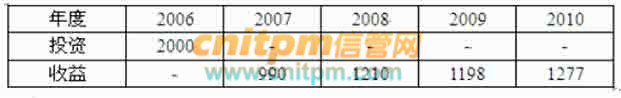 某软件企业2006年初计划投资2000万人民币开发某产品,预计从2007年开始盈利,各年产品销售额如表所示。根据表中的数据,该产品的静态投资回收期是(1)年,动态投资回收期是(2)年。(提示:设贴现率为0.1)