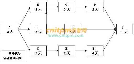 项目经理在为某项目制定进度计划时会治疗如下所示的前导图(如图2所示)。图中活动E和活动B之间为结束-结束关系,即活动E结束后活动B才能结束,其他活动之间的关系为结束-开始关系,即前一个活动结束,后一个活动才能开始。