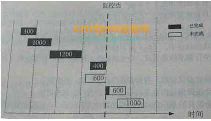 假设某项目任务已进行了充分细化分解,任务安排及完成情况如下图,已获价值适用50/50规则(活动开始执行即获得一半价值),则下图中项目监控点的PV、EV、BAC分别为()