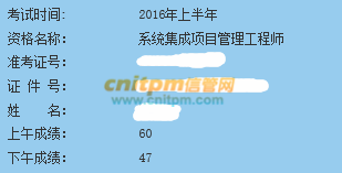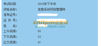 以下内容转自2016信管征文:【信管征文】2016年:下半年高项165,上半年中项107 ,作者:270299895@qq.com