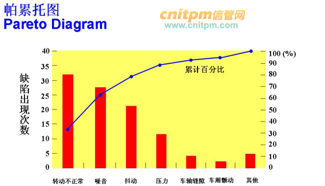 根据80/20规则,80%的问题可能是由20%的原因引起。为了找出哪些关键的问题,你将问题进行排序使用:帕累托图