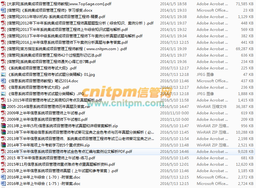 2016年,我参加并顺利通过了上半年的中项(系统集成项目管理工程师)考试和下半年的高项(信息系统项目管理师)考试。软考试卷成绩满分为75分,45分通过。我从大学毕业后就一直在it通信行业从事系统集成类的工作,从技术支持、系统运维工程师、系统交服工程师、一直做到了现在的项目经理。也早就听说业内有这两门资格考试,但每每看到身边同事们都是报考三四次才能勉强通过,有些同事们报名了但由于没复习而放弃参加考试,对自己多少有些打击。今年适逢公司要求项目经理要持证上岗,另外自己也求知似渴地需要补充项目管理方面的知识来全面提升工作能力,就大胆报考了这两项考试。考试前都用了工作之余的两个月时间来复习考试,目前都已顺利通过考试,现将复习考试的经验教训总结分享如下。