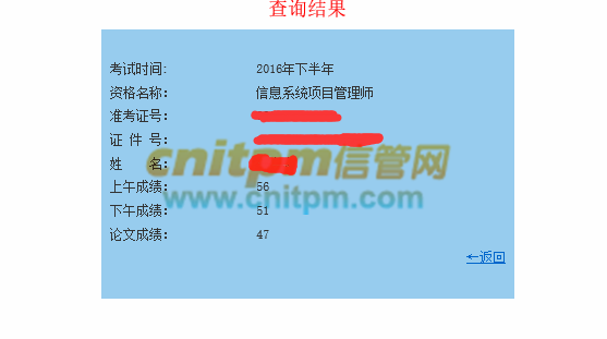 做每年的计算题,找到解题的要点和出现错误的原因,计算题首先要理解题干,然后分析需要那些知识点,比如挣值计算和进度管理,思路一定要清晰,否则可能掉入陷阱,导致计算题丢很多分,大家都说“得计算者得案例”,2016年下半年的计算题需要回答的问题很多,计算繁琐,导致大家在第一题上面耽误时间太多了,后面2道题随便看看就要到时间了,这样让很多人倒在案例上面,其他的涉及到九大管理的简答和记忆性的东西,我全部给分类处理,根据案例万金油,该理解的理解,该背的要背,出现什么样的题干要想到考那里的知识点,毕竟多写不扣分,也不要答案每条写很多,重要的是关键知识点,也许你写了半天,判卷老师找不到知识点,也就给你1分辛苦分,所以案例分析题,一点要抓住答题的关键知识点,写上2到5个字的知识点也许就能得到全部分数,所以大家一定注意,很重要。我的计算题ev就算错误了,基本上整个计算题就等于over,当然这些都是考试后大家讨论后才知道,不过当我看案例题的得分是时候真的很惊讶,51分…….
