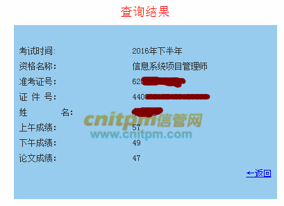 2016年下半年软考高项成绩查询获喜,成绩57/49/47,如果不出意外应该惊险通过高项,应该说这个成绩对科班出身的人来说非常一般。查分前真是很紧张,当分数映入眼帘时,真是好开心,激动。终于通过了,给我2016年最好的礼物。看到很多牛人一次通过,在这我不敢说分享经验了,就写自己的我的心酸经历。
