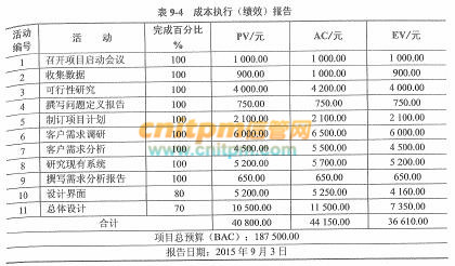 表9-4给出了某信息化建设项目到2015年9月3日为止的成本执行(绩效)数据。