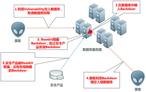 利用漏洞可以让黑客攻入目标系统内部,夺取数据库权限,利用后门则为黑客后续攻击提供了一扇可任意出入的门,Rootkit则像一件隐形外衣,保护后门不被安全工具发现。漏洞、后门和Rootkit三者联合组成高级渗透攻击的常用手段。由此看见,解决安全问题不只是应对漏洞问题(按时打补丁即可)那么简单了,更重要的是解决后门和Rootkit的问题。虽然Rootkit具备了隐藏后门的能力,但DBScan优于一般扫描类安全产品的地方之一正在于可以识破Rootkit,发现后门。