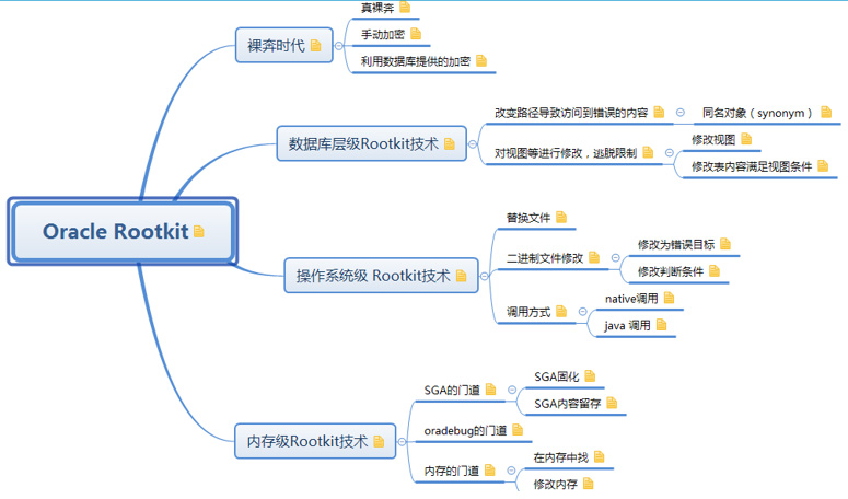 后门本身有多种形式,可能是DBA账号,可能是存储过程、函数、视图等。后门为黑客的后续入侵提供了方便之门,但后门本身是可以被一些专业的数据库扫描软件(例如DBScan)发现的。为了能够将后门隐藏起来不被发现,出现了一种技术叫做rootkit (Rootkit本意是使用root权限的工具集,但在本文中的意思是帮助Backdoor躲避检查的技术),Rootkit就像给后门套上了一层隐身衣,防止被安全扫描软件发现。