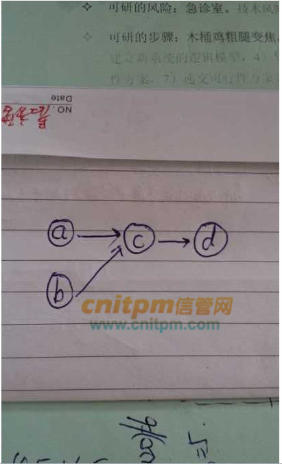 在单代号图中,ab都流入c,但b的后继活动还有d