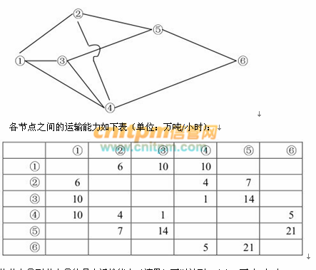 各节点之间的运输能力如下表(单位:万吨/小时):