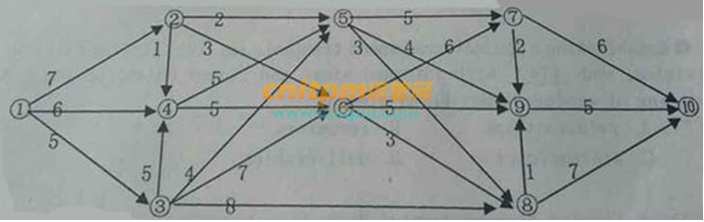 某工程的进度计划网络图如下,其中包含了①~⑩10个结点,节点之间的剪线表示作业及其进度方向,剪线旁标注了作业所需的时间(单位:周)。设起始结点①的时间为0,则结点⑤的最早时间和最迟时间分别为()周