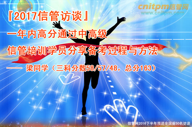 鉴于此,JRS直播为了帮助2017年上半年备考信息系统项目管理师和系统集成项目管理工程师的学员调整好心态,提高备考学习效率。特邀请JRS直播2016年下半年信息系统项目管理师预进全国前50名优秀学员:梁同学(信管用户名:l_xq,总分163)做客JRS直播,分享成功经验,就2017年考生在冲刺阶段所关心的考试问题进行全方位解答指导,交流备考经验、学习技巧,分享成功秘诀,指引您少走弯路,助您梦想成真!(此访谈活动对所有注册学员免费开放)
