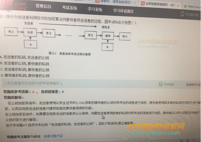 貌似答案都不正确,非对称加密原理:发送者用接收者公钥加密,接收者用私钥解密。