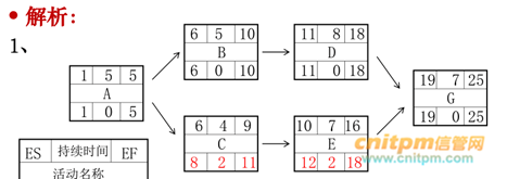 E的最晚是G的最早,减去持续7,等于11是E的最迟开始,然后最晚结束减去最早结束,是浮动