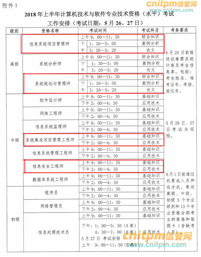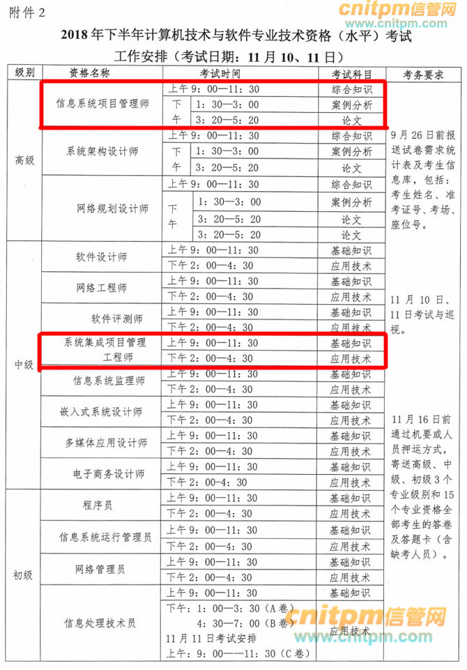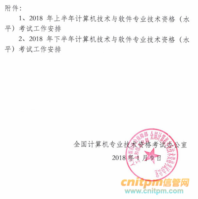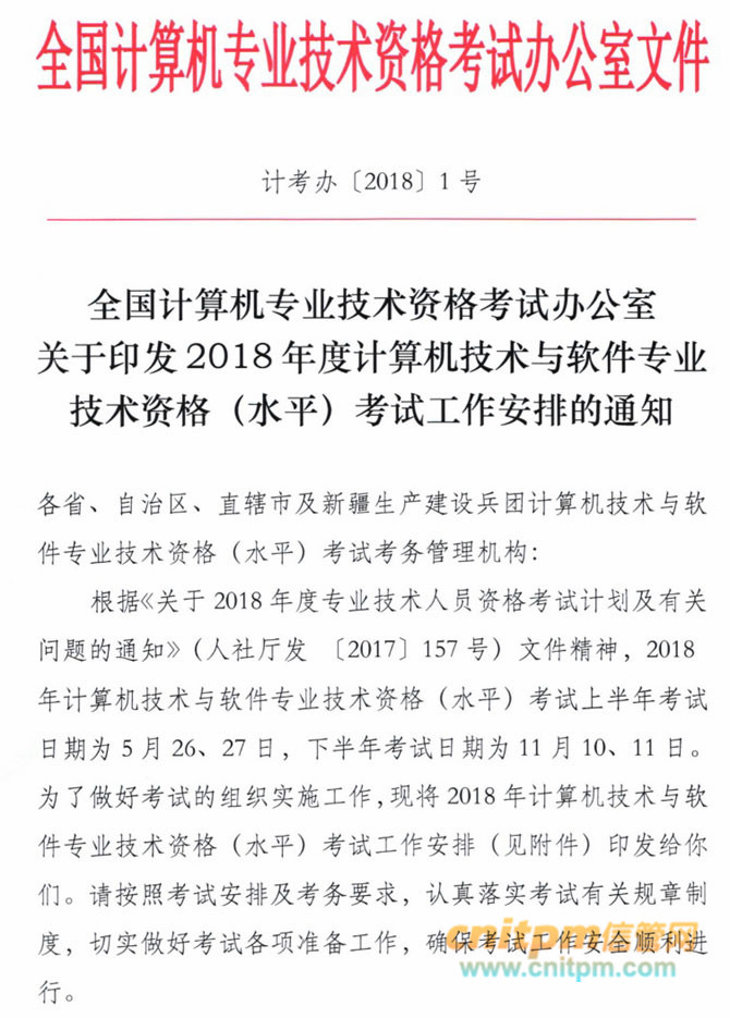 关于印发2018年度计算机技术与软件专业技术资格(水平)考试工作安排的通知