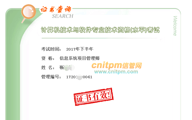 2017下半年系统集成项目管理工程师合格证书管理编号查询地址
